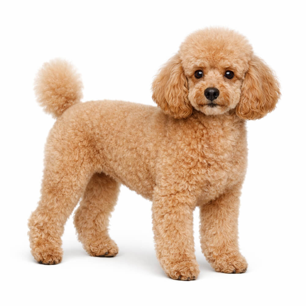 The Miniature Poodle is a small-to-medium, intelligent breed that sits between the Standard and Toy varieties in size. Bred down from the Standard Poodle for truffle hunting and later companionship, the Miniature retains all the intelligence and trainability of its larger cousin in a more compact frame.