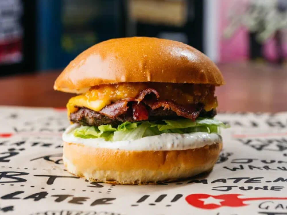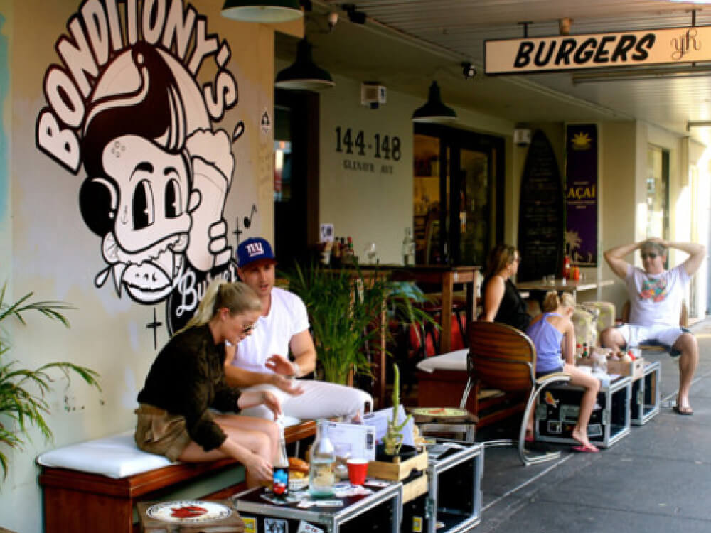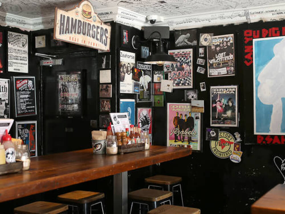 Bonditony's Burger Joint has run its rock-and-roll-themed counter service since 2017, five minutes back from Bondi Beach. Founder Tony Gosden came from the music industry. Walls and ceiling disappear under a collage of posters, CDs, framed records and signed chart-toppers. The eight-strong burger list takes its names from bands and industry memories: The Boss layers grass-fed beef with bacon, double American cheese, McClure's pickles, deep-fried jalapeños and house aioli; Vero Valentino swaps panko-crumbed barramundi into the stack. Sweet potato fries hold up better than the standard chips. Kick Ass Bloody Marys and Altos-listo margaritas round out the drinks.