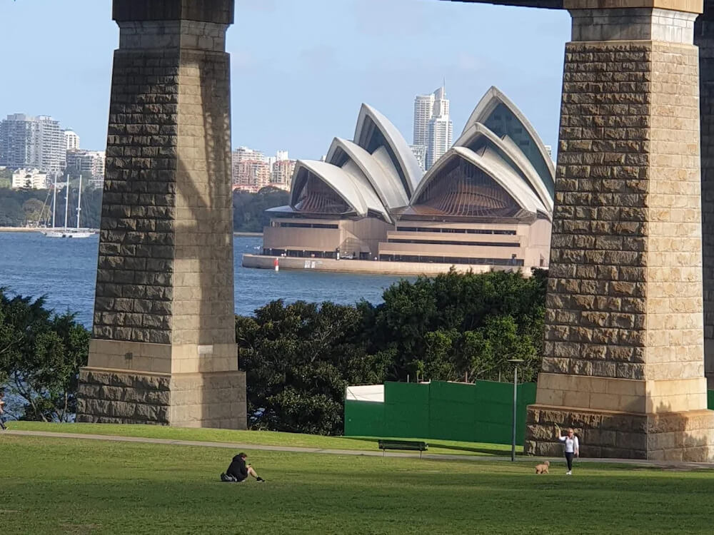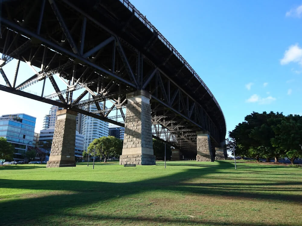 Bradfield Park offers one of Sydney's most dramatic off-leash settings — nestled directly beneath the Harbour Bridge at Milsons Point, with sweeping views of the Opera House and a front-row seat to one of the world's great engineering icons. The unfenced 24-hour park features open lawns, a water station, and on-site toilets, making it a complete destination for harbour-side off-leash play.