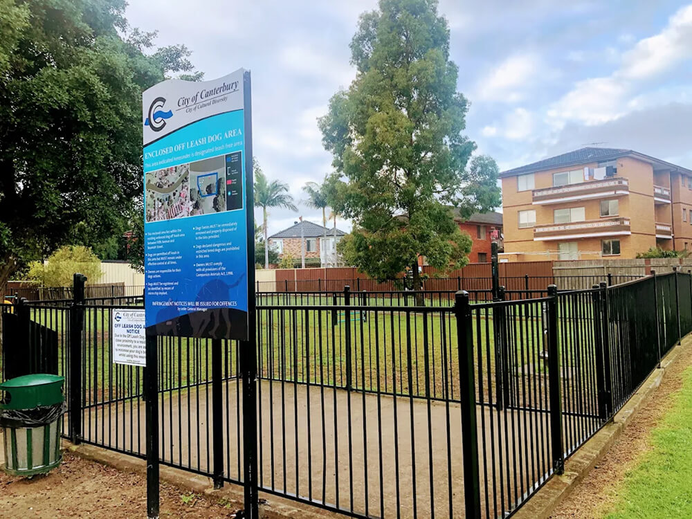 Cooks River Foreshore in Campsie is one of the more well-equipped dog parks in the Canterbury-Bankstown area, featuring a purpose-built fenced off-leash enclosure with an agility course including ramps, weave poles, and tunnels.