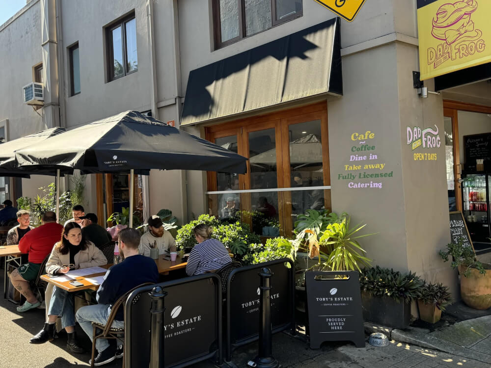 Opened in 2022, Dad and the Frog has quickly become a neighbourhood favourite in Surry Hills with genuinely good food, specialty coffee and authentic hospitality. The outdoor dining area sits just a minute's walk from Moore Park Dog Park, making it perfectly positioned for post-walk coffee and brunch.