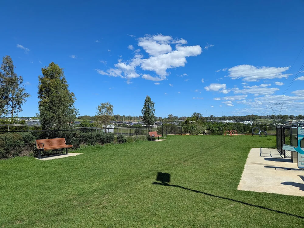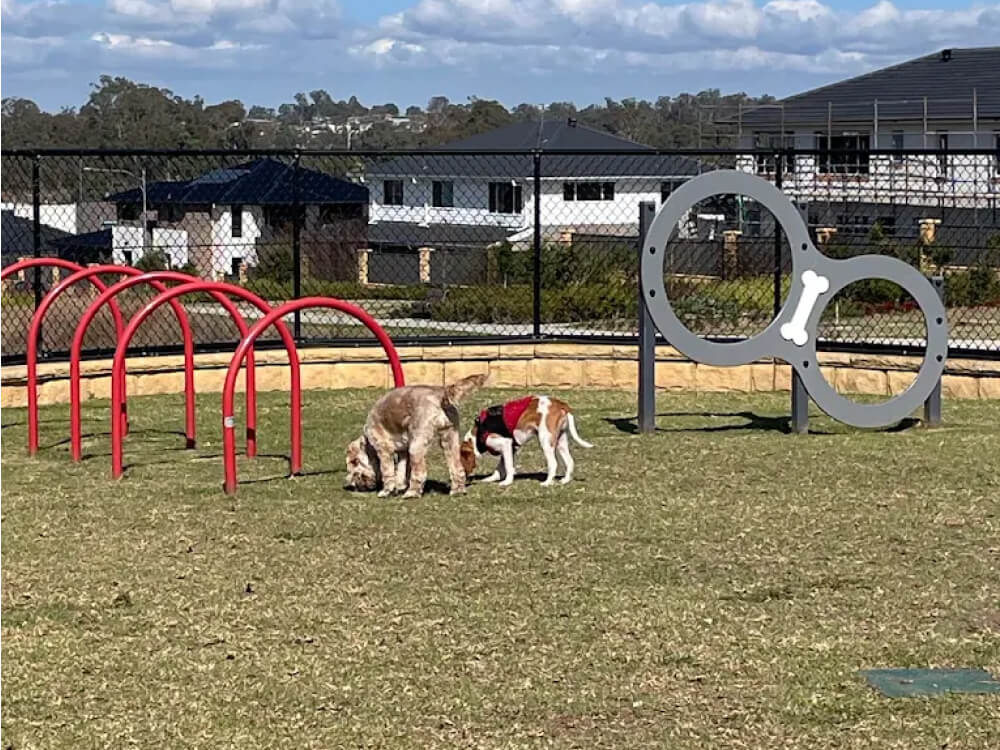 Located in Western Sydney’s Camden region, the Emerald Hills Dog Park on Emerald Hills Boulevard and Leslie Way in Emerald Hills provides a fully fenced off‑leash dog park designed for safe and structured play. The divided layout gives off‑lead freedom within a thoughtfully designed local green space.