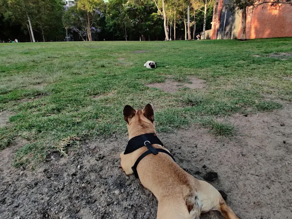 As the park is unfenced and bordered by busy streets, dogs with reliable recall are best suited here. The grass surface can wear down with heavy use and becomes muddy after rain. There are no dog-specific facilities, so owners should bring water.
