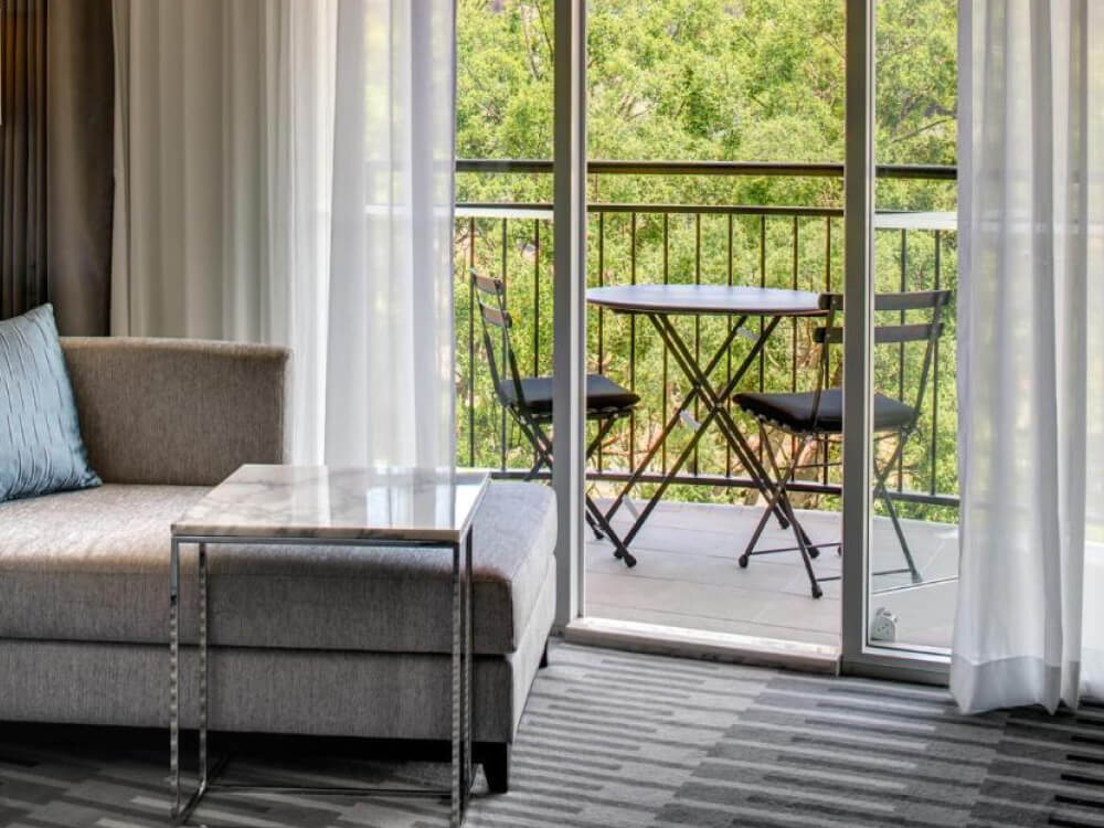The hotel's Pet Stay package opens up any room type to dogs, with a plush bed set up in the lounge and food and water bowls ready in the bathroom on arrival. The standout feature is the in-room pet dining menu, which is genuinely impressive: think Farmhouse Chook with chicken, carrots and steamed rice; Angus beef with pumpkin and sweet potato; and desserts including peanut butter ice cream and a probiotic smoothie with goat's milk and organic carob.