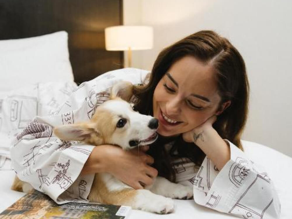 There are no fees, no size limits, no breed restrictions, and no need to book a special room — every room in the hotel is pet-friendly. Dogs are welcomed on arrival with treats, a plush pet bed, food and water bowls, and a concierge list of nearby parks, groomers, and dog-friendly cafes. They're also welcome at Harper, the rooftop bar, and throughout the lobby.