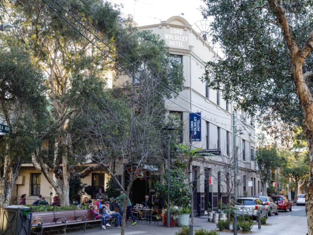The Lord Wolseley Hotel has been pouring drinks on a quiet Ultimo corner since 1881. A whitewashed heritage facade, Grifter Brewing Co signage out the front, Wentworth Park just across the way. The bar opens midday to midnight; the bistro adds dinner Wednesday through Saturday. Saturdays bring a $1 oyster deal. Pub classics do the lifting — the OJ Burger, steak with chips and onion rings, and the Absolutely hash. In the venue's own words, it's been in continuous service to the international community for more than 140 years.