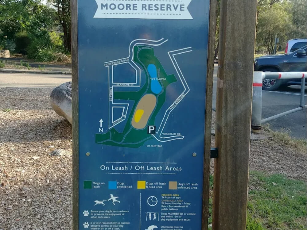 Moore Reserve sits between Oatley Bay and a constructed wetland, offering scenic connections to wetlands and water views. It links seamlessly to local walking and cycling routes, including paths leading to Oatley Shops and the nearby Renown Park sports ground.