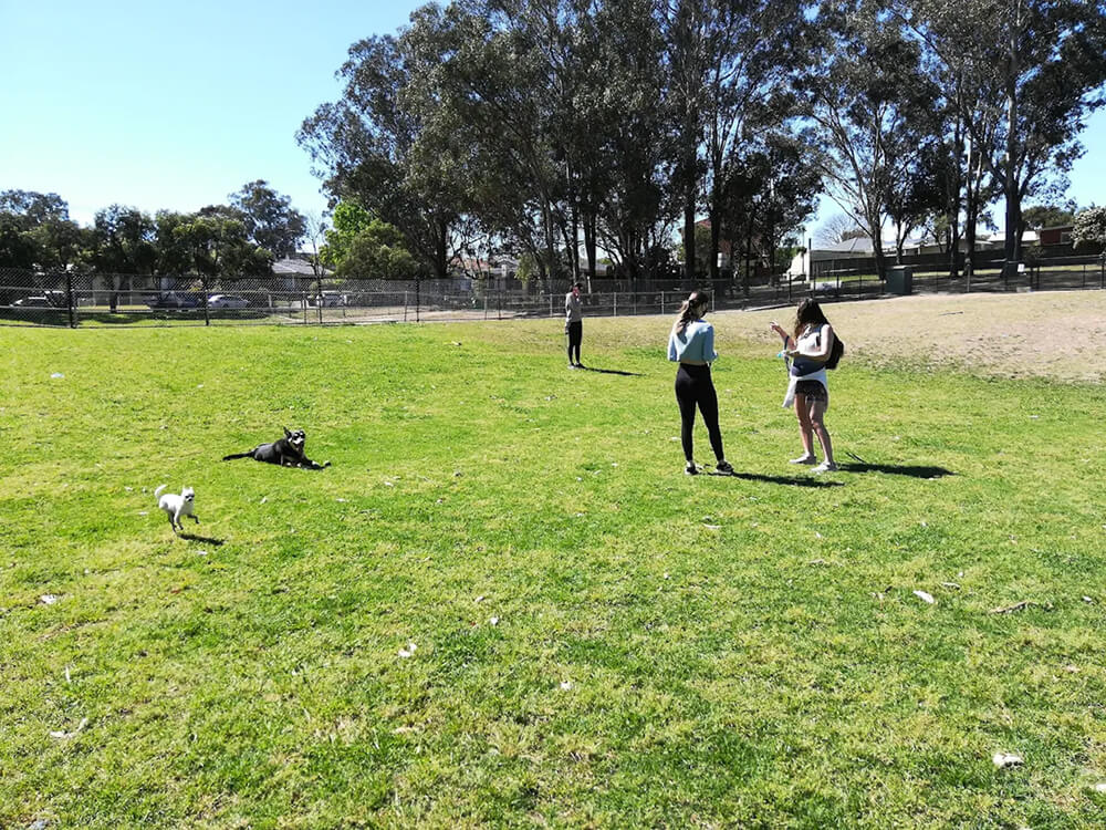 The park features a grassy surface with room for play and socialising, along with seating for owners to supervise comfortably. Facilities are limited, with no water stations or dedicated shade, so it’s recommended to bring supplies and visit during cooler times of the day. Parking is available on nearby streets.