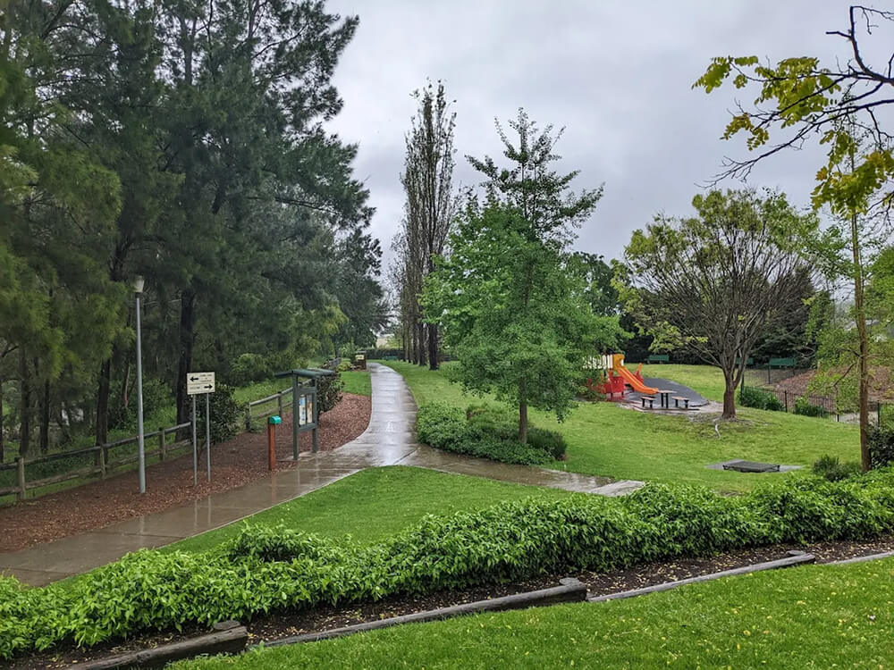 The park is tucked off a quiet residential street, making parking easy on Rosevale Place. Its location also allows for a quick stroll to nearby homes or further on-leash walks through the Narellan neighbourhood.