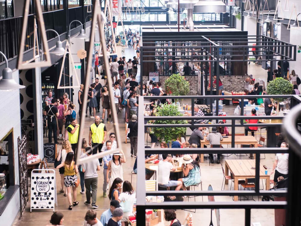 The venue maintains clear boundaries — dogs cannot enter cafes or sit at dining tables, though they're welcome in outdoor areas and at centre tables. The presence of PetBarn makes it convenient for dog owners, while the open-air design and casual industrial atmosphere create a genuine sense of community for those shopping with their dogs in Rosebery.