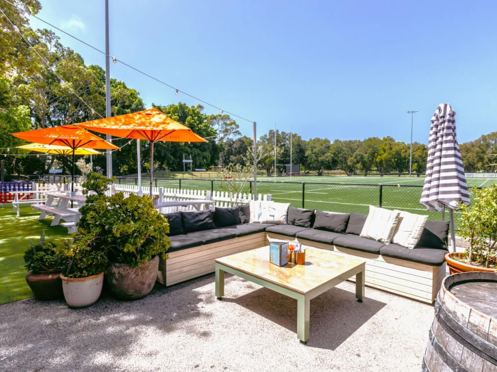 The Fields at Easts Rugby sits on the edge of Woollahra Golf Course in Bellevue Hill, with more gumtrees than cars visible from the deck. Chef Madita Kosch, formerly of Bills Darlinghurst, runs the kitchen — pub classics through a bistro lens, plus an on-site smokehouse turning out the slower cooks. Lawn games do the heavy lifting on the grass: giant Jenga, Connect Four, bocce, cornhole, ping pong. The ground-floor bar had a recent refurb, but the appeal is still the open-air spread and the golf-course quiet just minutes from Bondi and Double Bay. The kitchen fires Tuesday to Sunday.