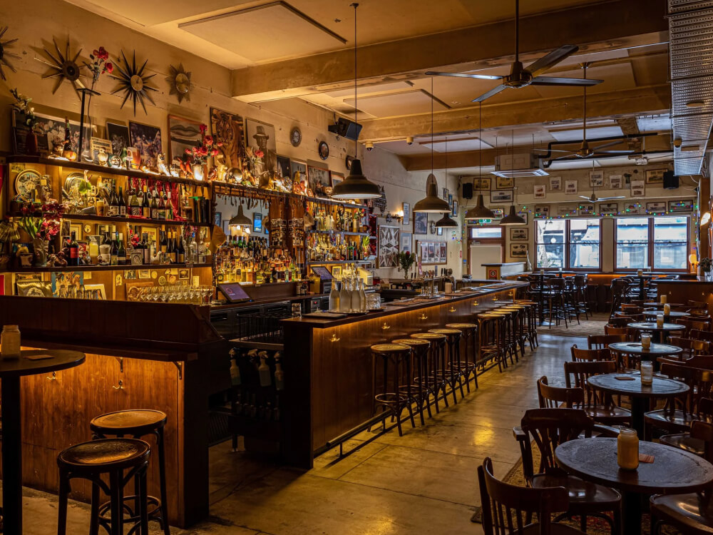 The Marrickville Hotel is a corner pub in Marrickville with an eclectic fit-out: wooden bar front, fairy lights over long communal tables, greenery running along the back. The real draw is the courtyard out back — long tables, fire pits when it's cold, and the kind of loose layout that makes Sunday afternoons disappear. The bar handles local craft taps and cocktails; the kitchen leans pub classics. Reviewers love the atmosphere more than the kitchen, which is honest information.