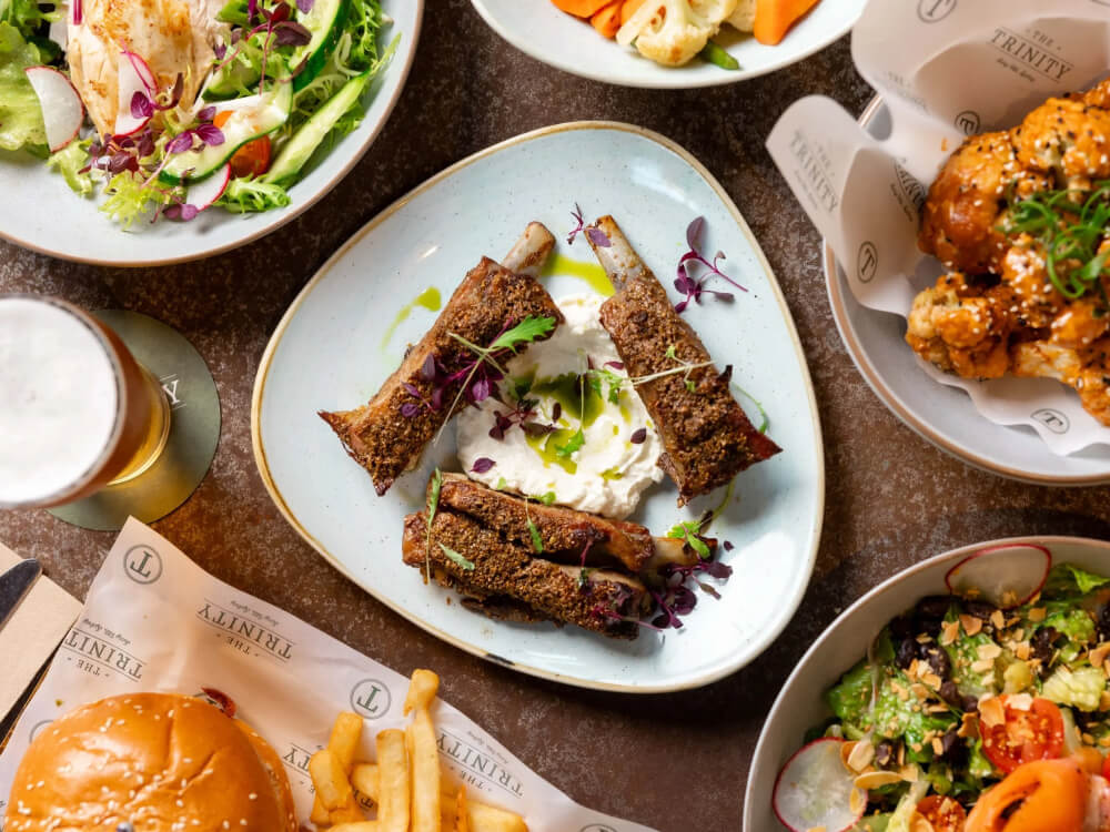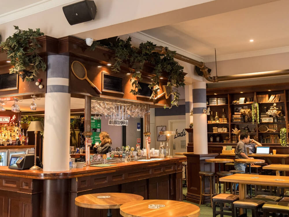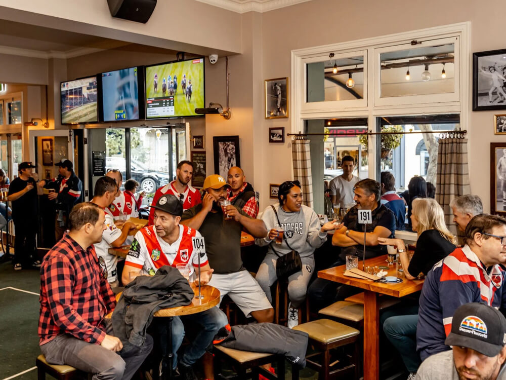 Trinity is a Surry Hills corner pub that has traded under four names since 1882 — Somers Hotel, Surry Hills Inn, The Elephant's Foot, and now Trinity, a nod to Trinity College Dublin that keeps Guinness permanently on tap. The current fit-out splits the room cleanly: downstairs runs as an Irish-leaning pub crossed with a sports bar, live games rolling under schnitzels, beef-and-Guinness pies, burgers and battered barramundi. The 2019 renovation added Tilly May's upstairs, a rooftop bar with a retractable roof, exposed brick and a quieter cocktail-led feel.