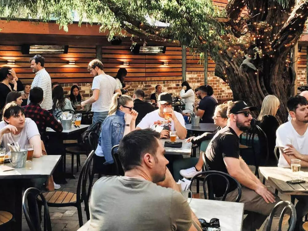 The Warren View is an Enmore pub that has been independent since 1870. A 2019 refurbishment turned the back garden into one of the prettiest beer gardens in Sydney, anchored by a central tree strung with fairylights. The tap wall runs heavy on Inner West craft, the wine list tilts local too, and the kitchen pulls together proper pub classics alongside Inner-West-accented options: jackfruit gyros, som tum salad, cauliflower nuggets, a reliable eggplant parmigiana.