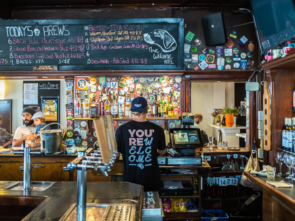 The Welcome Hotel is a Rozelle backstreet pub with a proper 1890s bone structure — cosy front bar, dining room, leafy beer garden — and has been trading since 1877, originally as Rhenisch's Hotel. The tap wall leans heavily into independent Australian breweries (Mountain Goat, Moo Brew and the rest), and the kitchen sticks to a reliable spread of steaks, schnitzel, fish-and-chips and a Sunday roast that pulls the neighbourhood out in force.