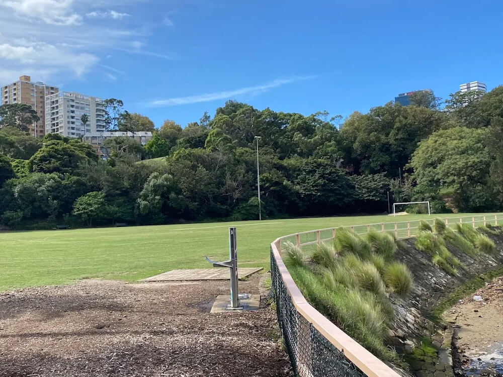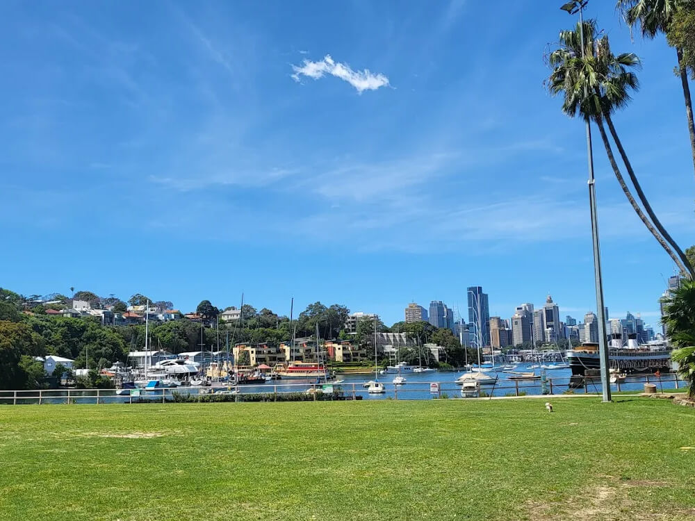 Waverton Park on Larkin Street is a spacious off-leash park with panoramic views over Berrys Bay to the Sydney Harbour skyline, framed by a magnificent row of Hill's Weeping figs. Expansive lawns, bench seating throughout the grounds, a harbourfront sportsfield, and the nearby Merrett Playground combine to make this one of the most complete parks in the North Sydney LGA. The generous size and open landscape make it a favourite for dogs needing serious room to run.