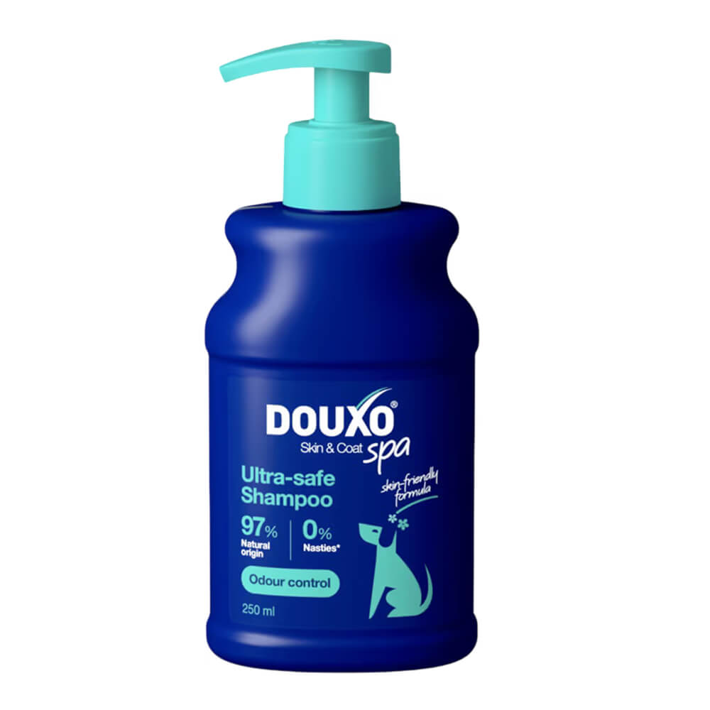 DOUXO SPA Odour Control Shampoo is a soap-free dog shampoo from the DOUXO SPA range by Ceva Animal Health, formulated to neutralise and control unpleasant coat odour. The formula contains a proprietary complex of odour-neutralising ingredients that target sebum-related smells, alongside a hypoallergenic coco-vanilla fragrance. Ophiopogon japonicus root extract and provitamin B5 (panthenol) provide skin-barrier support.