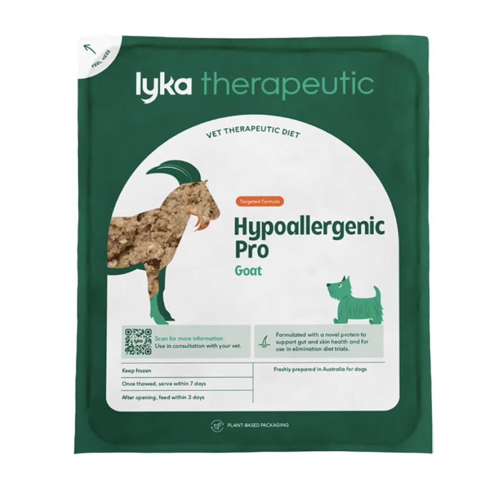 Lyka Hypoallergenic Pro is a single novel protein fresh meal made with goat — formulated specifically for dogs with food sensitivities, allergies and gut issues.