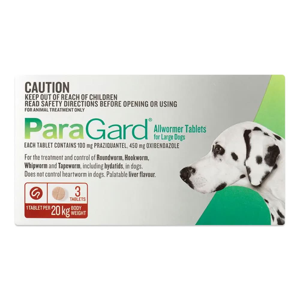 ParaGard provides broad spectrum intestinal worm protection for dogs of all sizes with a single liver flavoured tablet.