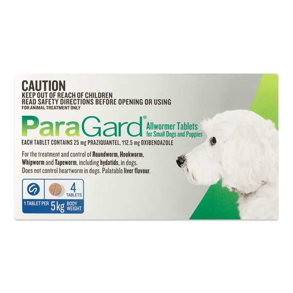 ParaGard® Allwormer for Dogs is an oral broad-spectrum deworming tablet that targets the major intestinal worms affecting dogs in a single dose. Its dual active formula — oxibendazole and praziquantel — works together to eliminate roundworms, hookworms, whipworms and tapeworms, including the hydatid tapeworm.